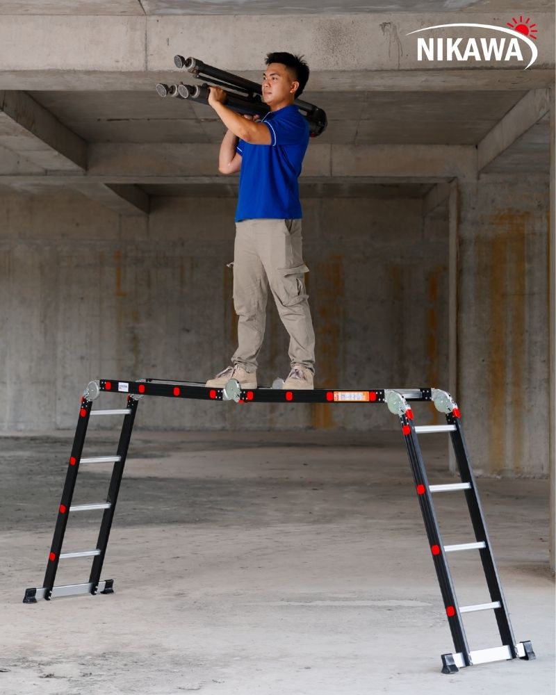 Chỉ với một chiếc thang bạn có thể sử dụng dưới dạng duỗi thẳng để trèo lên bờ tường hay cần thang chữ A để có thể đứng giữa nhà lắp quạt trần, hay bóng đèn trên cầu thang, hay cần một chiếc thang không cần quá cao có thể sử dụng như giàn giáo giúp bạn sơn tường thì chiếc thang nhôm gấp đoạn nikawa NKG-43 đúng là một sản phẩm mà bạn đang tìm kiếm rồi đó.