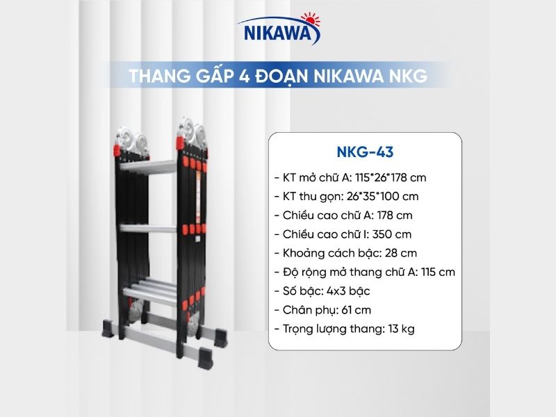 Thông số thang nhôm gấp 4 đoạn Nikawa NKG-43: